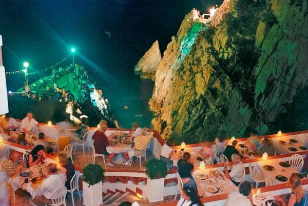 ESPECTÁCULO DE CLAVADISTAS DE LOS ACANTILADOS ALTOS DE LA QUEBRADA EN EL RESTAURANTE LA PERLA ACAPULCO