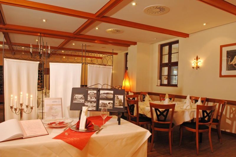 El restaurante ""Zum Alten Schwan"", que fue durante siglos una taberna junto al puente Krí¤mer, sirve ahora especialidades internacionales y de la región de Turingia en una atmósfera medieval. El atractivo del restaurante es hoy completamente diferente: antiguamente muy rústico, ahora el interior presenta un encanto femenino, elegante y llamativo. Podrá probar una de las ofertas especiales siempre diferentes o pedir a la carta.