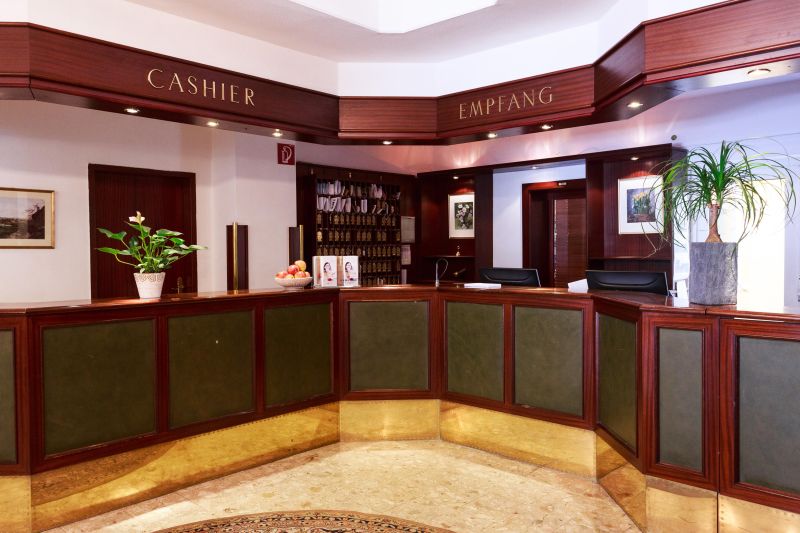 Más información del hotel dentro de poco tiempo. El vestíbulo es bastante espacioso, con un diseño tradicional con una zona de recepción en madera oscura. El vestíbulo cuenta con una zona pequeña de descanso.