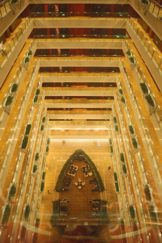 The hotel is designed by famous American architects. Guests may enjoy the excellent view of the unique architecture through our Sightseeing Elevator.The hotel has a Grand Ball room, function room, Auditorium Room and 5 different size meeting rooms, which can accommodate meetings, parties, banquets and conferences. The Grand Ball room has the capacity to hold 300 people for a banquet and 600 people for meetings.