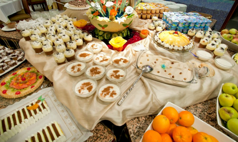 Todas las comidas del día se ofrecen en forma de buffet. A la hora del almuerzo y de la cena hay espectáculos de cocina.