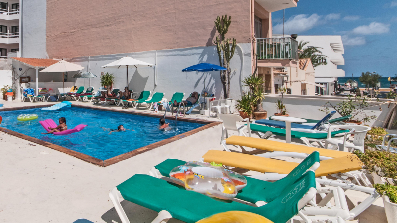 El hotel esta situado en el centro de Can Picafort, a 20 m de la playa. Delante del hotel hay un supermercado y una parada de autobuses.