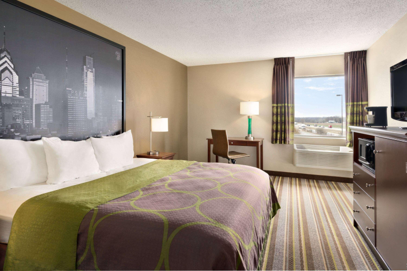 Our Super 8 Chambersburg hotel is conveniently located at the intersection of I-81 and Highway 997, just across Caledonia State Park from the historic city of Gettysburg. Visit loved ones at the Letterkenny Army Depot, or on the campuses of nearby Shippensburg University, Penn State Mont Alto, and Wilson College. Enjoy the local outdoor activities or travel an hour north to downtown Harrisburg for an assortment of restaurants and shops. Start your day off with a free continental breakfast. Connect to free WiFi and stream your favorite movies or unplug in our relaxing spa, heated indoor pool, and hot tub. Work up an appetite in the fitness center and grill fresh meals outside on our on-site barbecue. Each comfortable guest room features a flat-screen HDTV with cable, microwave, mini-refrigerator, coffee and tea maker, work space, in-room safe, ironing facilities, and air-conditioning