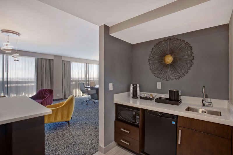 Our Hotel's Policies Have Changed ” Weve updated our reservation and cancellation policies and extended Hilton Honors Points and status. All United States properties require face coverings in all indoor public areas for guests and team members. Please visit our dedicated COVID-19 page for the latest. Prior to travelling, please check the local government website for your destination to understand any local requirements or restrictions that may be in place.Come rest in a historic hotel in the NW Expressway Business District when you choose Embassy Suites by Hilton Oklahoma City Northwest. We are located across from the Integris Baptist Hospital Complex. Our Oklahoma City hotel is near both the Integris Baptist and Integris Deaconess Hospitals, so friends and families of patients will have a comfortable stay while visiting loved ones. Lake Hefner Recreational Area is a great spot when wanting to take in some lake activities among suburban backdrops. With over 10,000 sq. ft. of event space our hotel is a great choice for your next convention, business meeting, family gathering or wedding. Relax in a studio suite that is equipped with a microwave, mini refrigerator, coffeemaker and HDTV. Get some business done or plan at the work desk. Keep your attire sharp with the iron and ironing board available. Relax on the comfy sofa. Choose a suite for a private room and living room area and more space. Enjoy the many facility amenities during your stay with us. Do the work needed for projects and business dealings from our business center. Keep up your workout routine in our fitness center. Start the morning right with a complimentary breakfast and unwind at the evening social. Utilize one or more of our 8 meeting spaces for all your event needs.