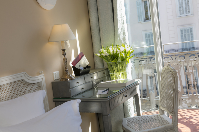 Su rica arquitectura en fachada, su ascensor de origen y el mármol de su recepción le confieren un encanto particular; se respira la atomósfera de las grandes mansiones de la Costa Azul de principios del siglo XX. Muebles antiguos y elegantes y refinadas telas se encuentran por doquier. Taxe Sejour (tasas): 1,30 euros por persona y día, pago directo en el hotel.
