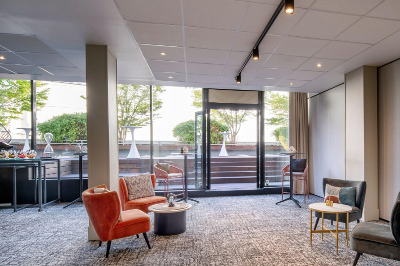 This hotel is located 600 meters from the Champs Elysees and just 70 metres from Ternes Metro Station, providing access to Montmartre.Restaurant is open for breakfast, lunch and dinner. Indonesian and French specialities are served in the Makassar restaurant. A buffet breakfast is served every morning at Renaissance Paris Arc De Triomphe Hotel.This is a modern building designed by famous french architect Christian de PortzamparcThis hotel has a large lobbyThe rooms and suites located in our top floors have large terraces overlooking the most famous Parisian icons from the Sacré C?ur to the Eiffel Tower. The Makassar restaurant offers two menus contemporary French cuisine and a selection of Indonesian dishes. The ceiling windows offer a nice view over the peaceful interior garden, you have to possibility to enjoy your lunch outside thanks to the outdoor terrace. For intimate diner, stay in our private chief table and enjoy an exclusive performance by the chief and his team through an open kitchen.