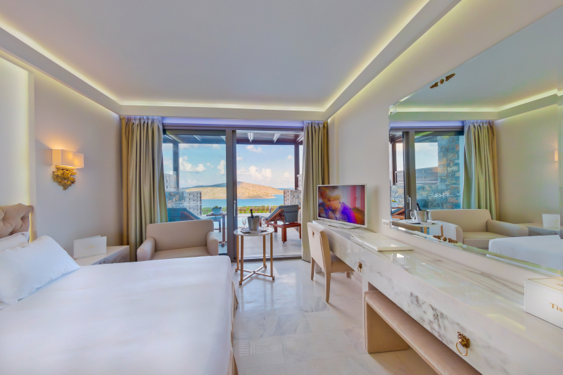 This beautiful hotel is situated in Lasithi, Crete, in Greece. The Heraklion International Airport is about an hour away from the complex. Guests will be delighted by the stunning outdoor swimming pool and its area where having a refreshing swim or sunbathing is total different experience since it is facing the wonderful Cretan Sea. The restaurants and bars offer delicious meals and drinks along with an agreeable atmosphere that allow travellers have a very enjoyable time. The sophisticated rooms are decorated with a combination of light and warm colours to create a cosy feeling. They are equipped with comfortable beds and with all the essential amenities to please even the most demanding guest.