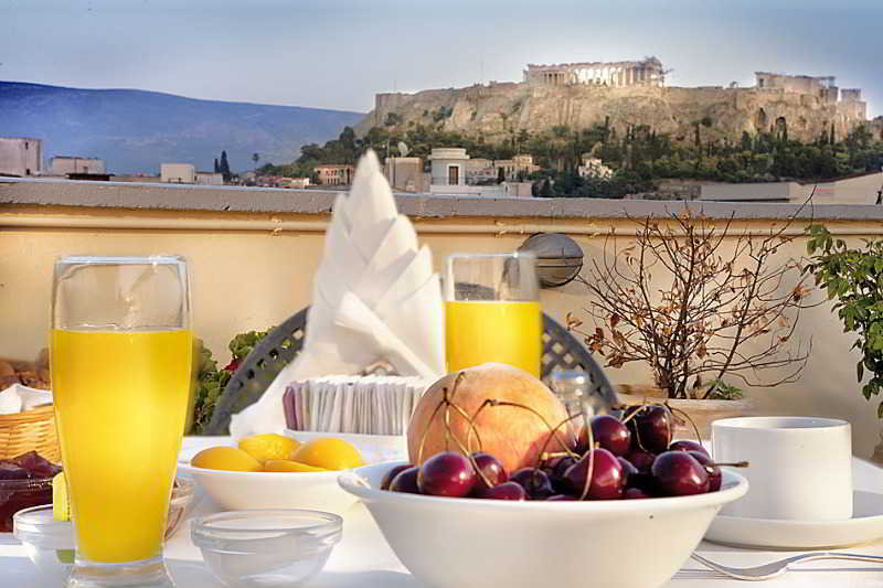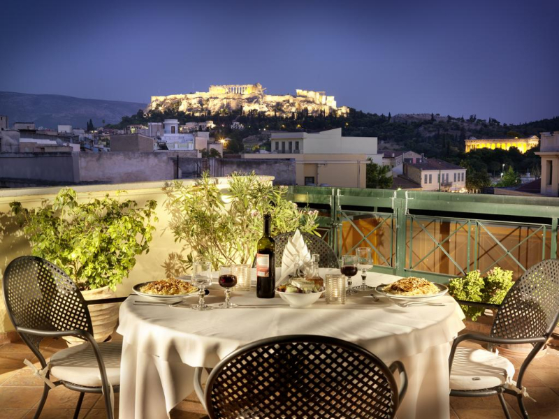 A tan solo 100 metros de la parada de autobús más cercana y a 10 minutos a pie de la Acrópolis, este hotel está idealmente situado en el centro de Atenas. Tras un día de turismo, los viajeros apreciarán la comodidad del aire acondicionado de las espaciosas y elegantes suites y habitaciones. Todas cuentan con balcón y algunas ofrecen hermosas vistas de la ciudad, pero para gozar de una espectacular vista de la popular Acrópolis y el Monte Licabeto, los huéspedes deberán reservar una mesa en el jardín del restaurante en la azotea. Para completar esta impresionante vista, el chef ofrece un tradicional menú griego de cuatro platos.