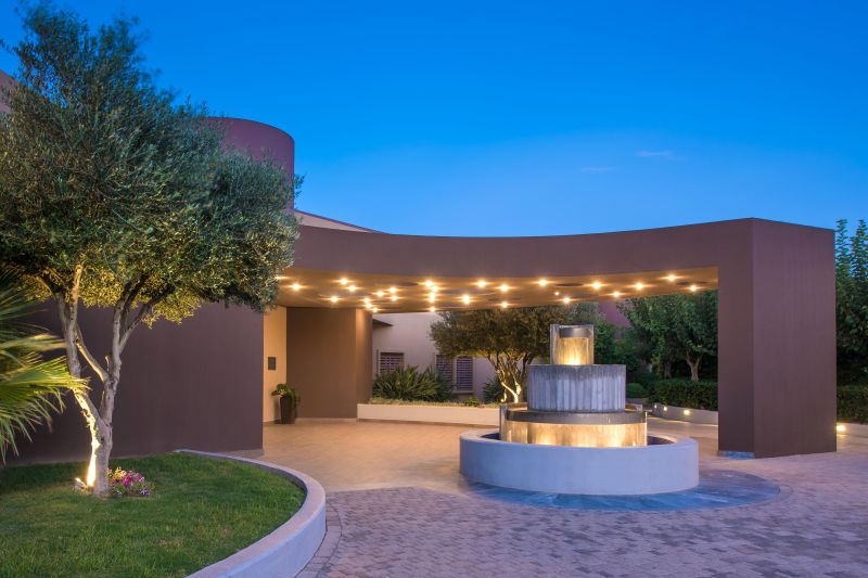 El hotel dispone de 202 habitaciones, todas con vistas al mar. Cuenta con SPA, piscina interior con jacuzzi, baño turco, sauna, miniclub, sala de juegos, piscinas exteriores, instalaciones deportivas, restaurantes y bares. Además ofrece servicio de lanzadera a la playa y programas de animación para adultos y niños, entre otros servicios.