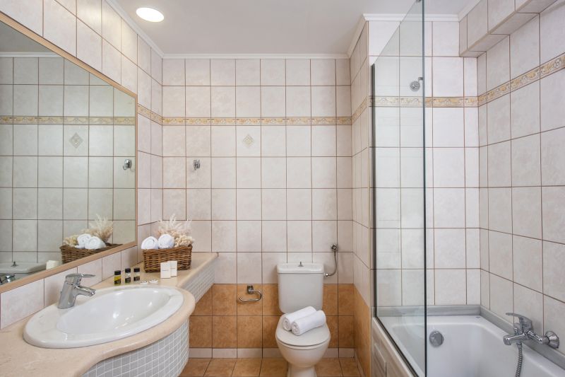 Las habitaciones tienen 25 m2 (para máximo 3 personas) y disponen de cuarto de baño con secador de pelo, teléfono de línea directa, TV vía satélite o por cable, nevera, aire acondicionado central y balcón o terraza.