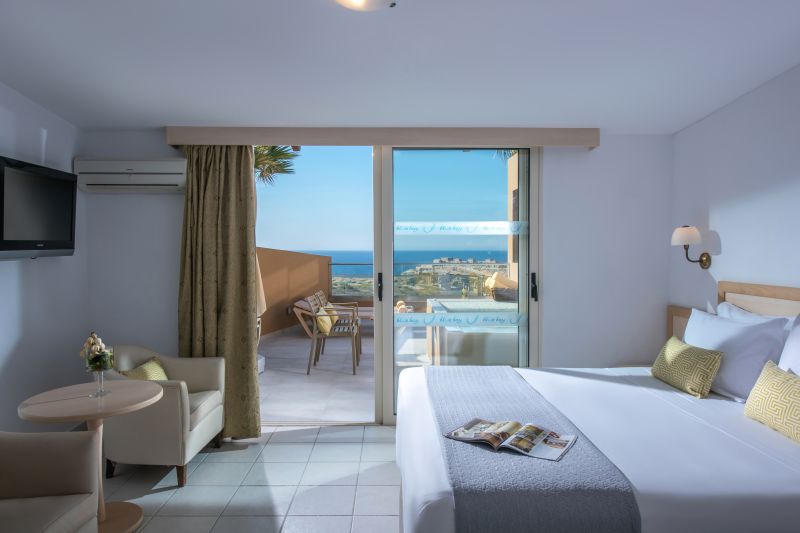 Situación: a 2 Km. de la aldea de Agia Pelagia, con vistas a la bahía de Mononaftis y a 22 Km. de Heraklion. Al lado del hotel hay una parada de transporte público.