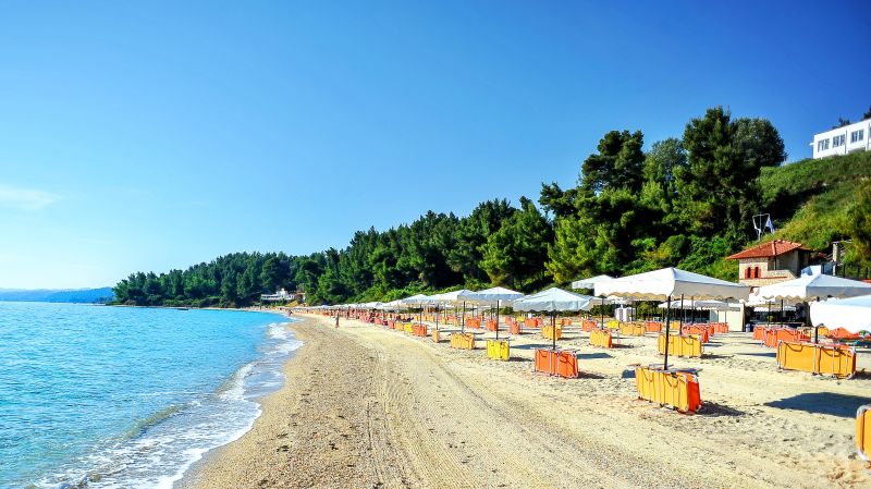 Located in a glorious and peaceful setting in a rural environment, south of the cosmopolitan Kallithea and 1.5 km from the traditional village of Kriopigi in Kassandra, the most legendary peninsula in Halkidiki. Set in just above a beautiful cove with a smooth sandy beach descending gently to the water edge. The lenght of the beach is about 2 km of natural sand.