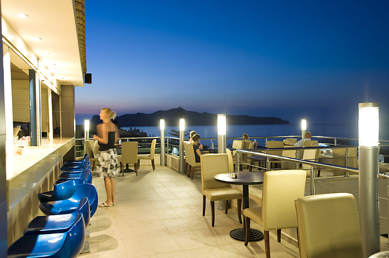 The main building is a built in a private extent above the sandy beach of Agia (Santa) Marina. It is a fish village hardly 8 kilometres away from the very beautiful city of Chania and 22 kilometres from the international airport Daskalogiannis in Chania. The hotel has an excellent view of the endless beach and the gorgeous Cretan sea and the unique verdurous landscape. It has a la carte restaurants in order to cover all expectations of our Guests, relaxation and non-stress areas such as heated swimming-pool, fitness center, sauna, steam bath and massage room. Our Guests can also enjoy a lovely cocktail or coffee in one of the Bars of our Hotel, gazing at the immense sea. These services are offered at the main building of the hotel. There is a shuttle bus (30 seats) to transfer our guests from the main building to its annex buildings and vice versa.