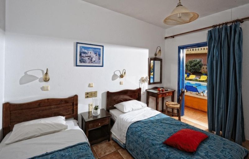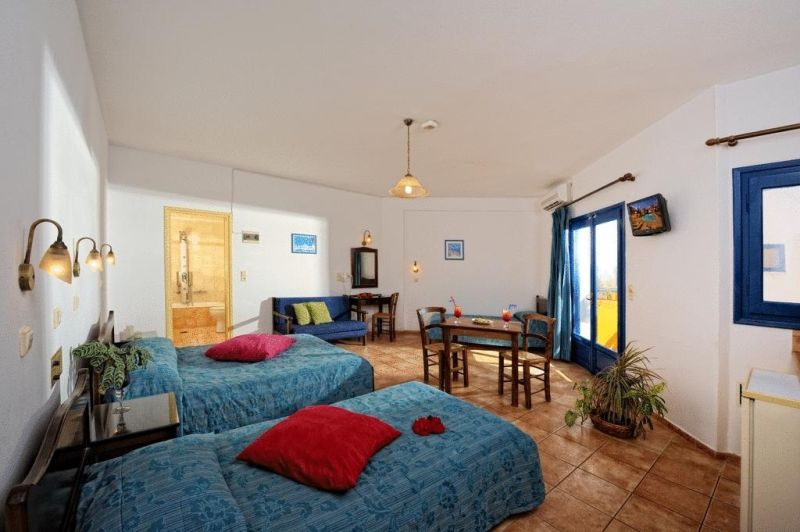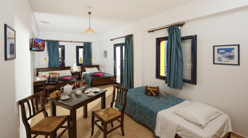 This family run hotel is located at the end of Malia beach road, in the old town. It is 30 km east from Heraklion and the capital city is approximately 30 m by car. Stalis and Hersonisos are within walking distance too. Guests will enjoy a lively and active atmosphere full of bars and restaurants. It is the perfect place for young couples and groups of friends who wish to enjoy an intense holiday experience. Important info :A/C, SAFE & WI-FI is paid on spot to the hotel