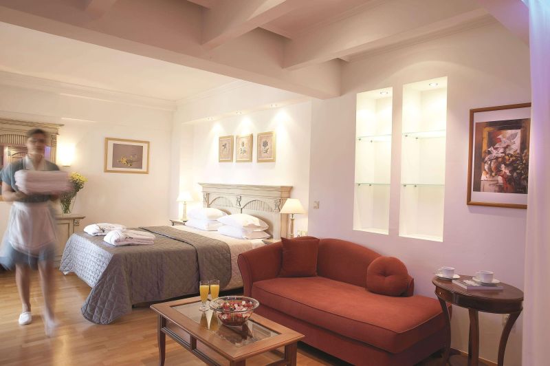 Las habitaciones tienen aire acondicionado y calefacción regulables, caja fuerte, nevera, minibar, TV vía satélite, teléfono de línea directa, cuarto de baño grande con bañera, ducha y secador de pelo, y balcón o veranda propios con vistas al mar, al jardín o a las piscinas.