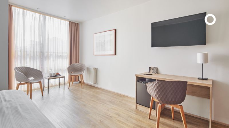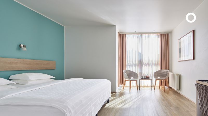 Todas las habitaciones tienen una decoración luminosa y moderna, con suelos de parqué y un mobiliario contemporáneo en madera de roble. Cada una de ellas dispone de cuarto de baño con ducha/bañera y secador de pelo, cama doble o extra grande, teléfono de línea directa, TV vía satélite/por cable, conexión a Internet, caja fuerte, minibar, cafetera/tetera, set de plancha, aire acondicionado y calefacción central.