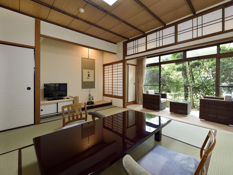 Located at four seasonal Mountains stretching comfortably.Can enjoy open air hot spring under star-filled night sky and white steam of all four seasons in your whole body.Entertaining with variety of serving dish is also pleased with.Chain-sister Inn-Kourokan can be used commonly,9 different hot baths including chartered bath can be enjoyed.