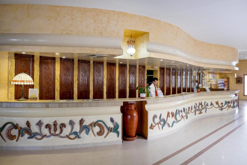 The hotel is situated directly on the beach, and is set in beautiful gardens. Located on the eastern Mediterranean coast, between Sousse and Monastir, right on a soft sandy beach and in front of an 18 hole Golf Course.