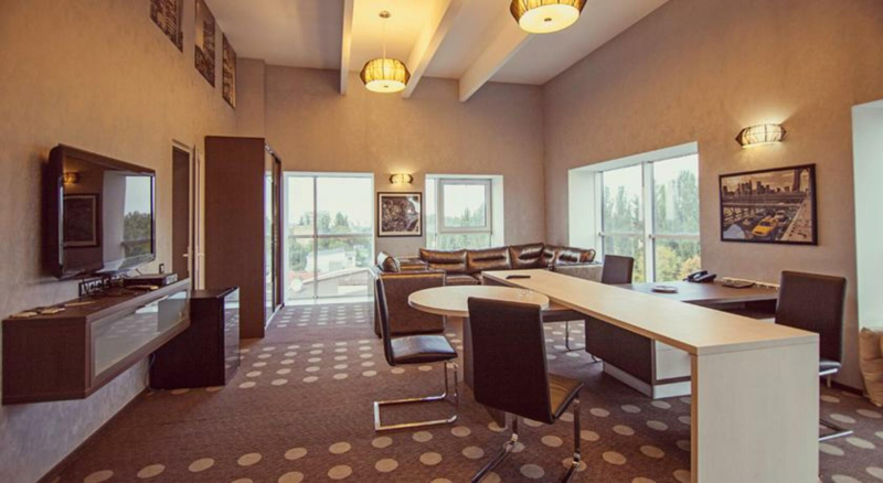 Este encantador hotel está ubicado en Kiev. Las principales zonas de ocio están a 5. 4 km del establecimiento. Los huéspedes encontrarán el aeropuerto a 47. 2 km. Hay un total de 44 dormitorios en el establecimiento. Este alojamiento fue construido en 2012. Además, las instalaciones disponen de conexión a internet inalámbrica. Este alojamiento ofrece recepción 24 horas para la comodidad de los huéspedes. Ambassador Plaza proporciona cunas para niños pequeños bajo solicitud previa. Ambassador Plaza no admite mascotas. Todos los clientes que se alojen en esta propiedad podrán utilizar el parking. Este hotel dispone de instalaciones de negocios para ofrecer la combinación perfecta entre comodidad y funcionalidad durante los viajes corporativos. Algunos de estos servicios pueden estar sujetos a cargos adicionales.